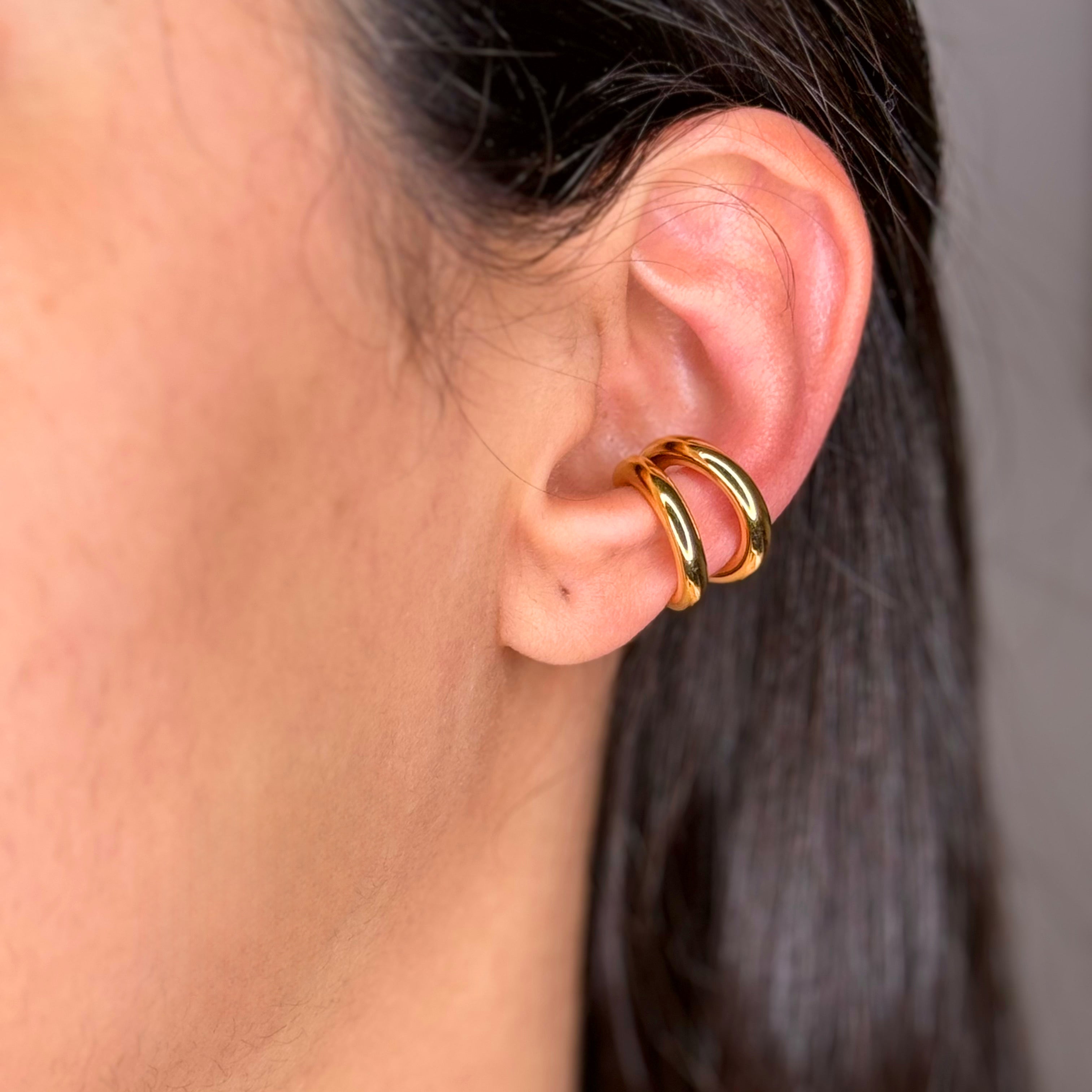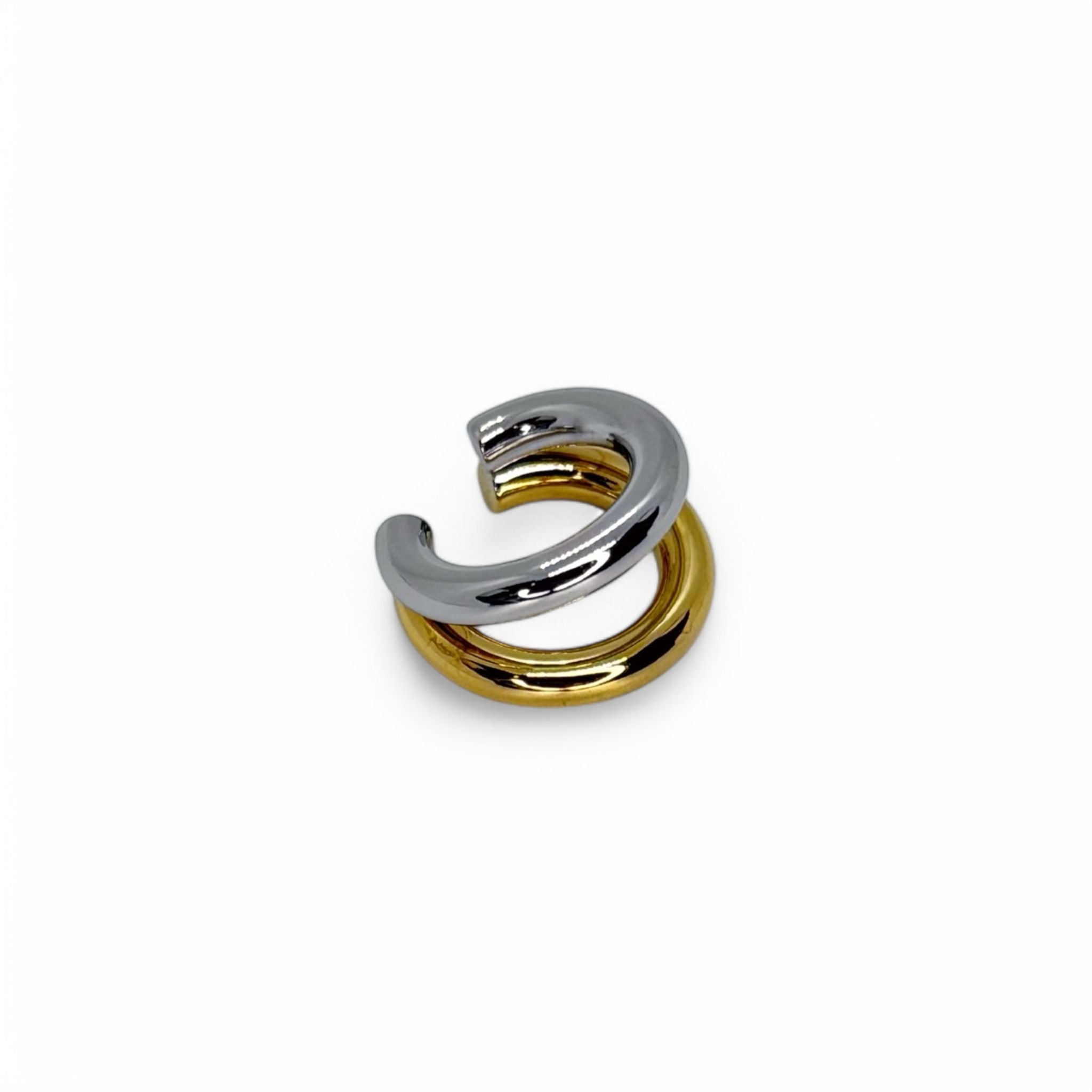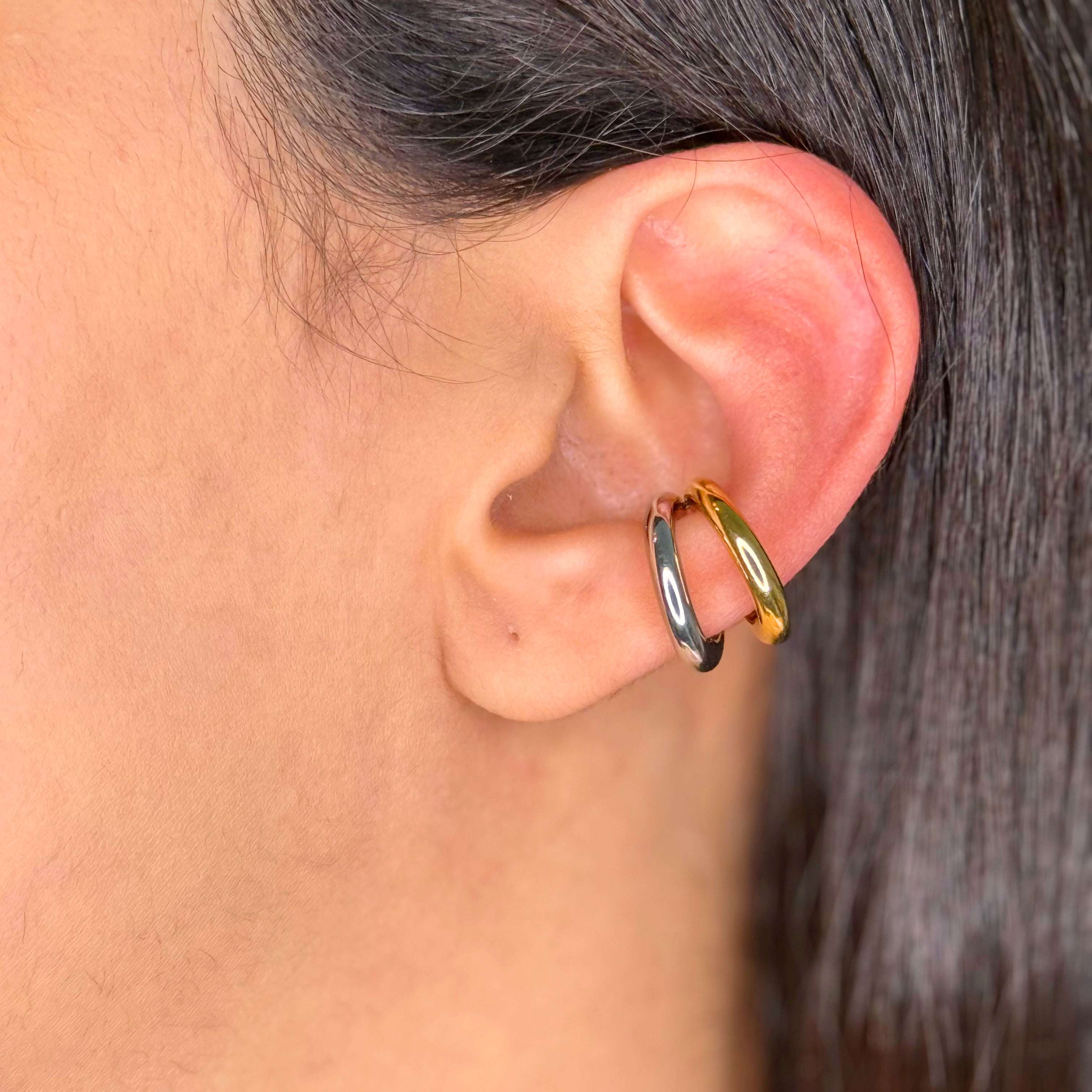 Ear Cuff Bi Hoop è un orecchino caratterizzato da due linee circolari che si uniscono alle estremità.