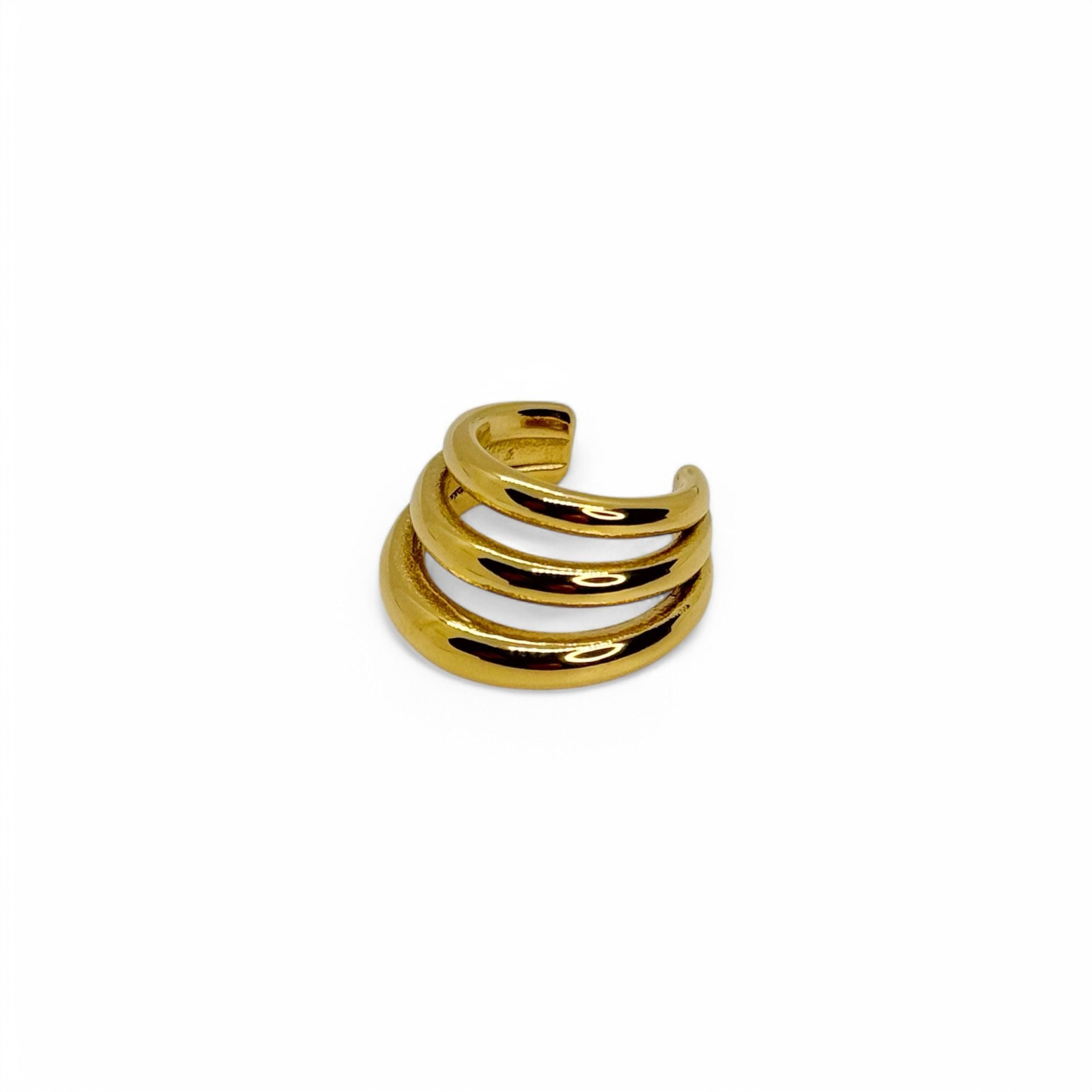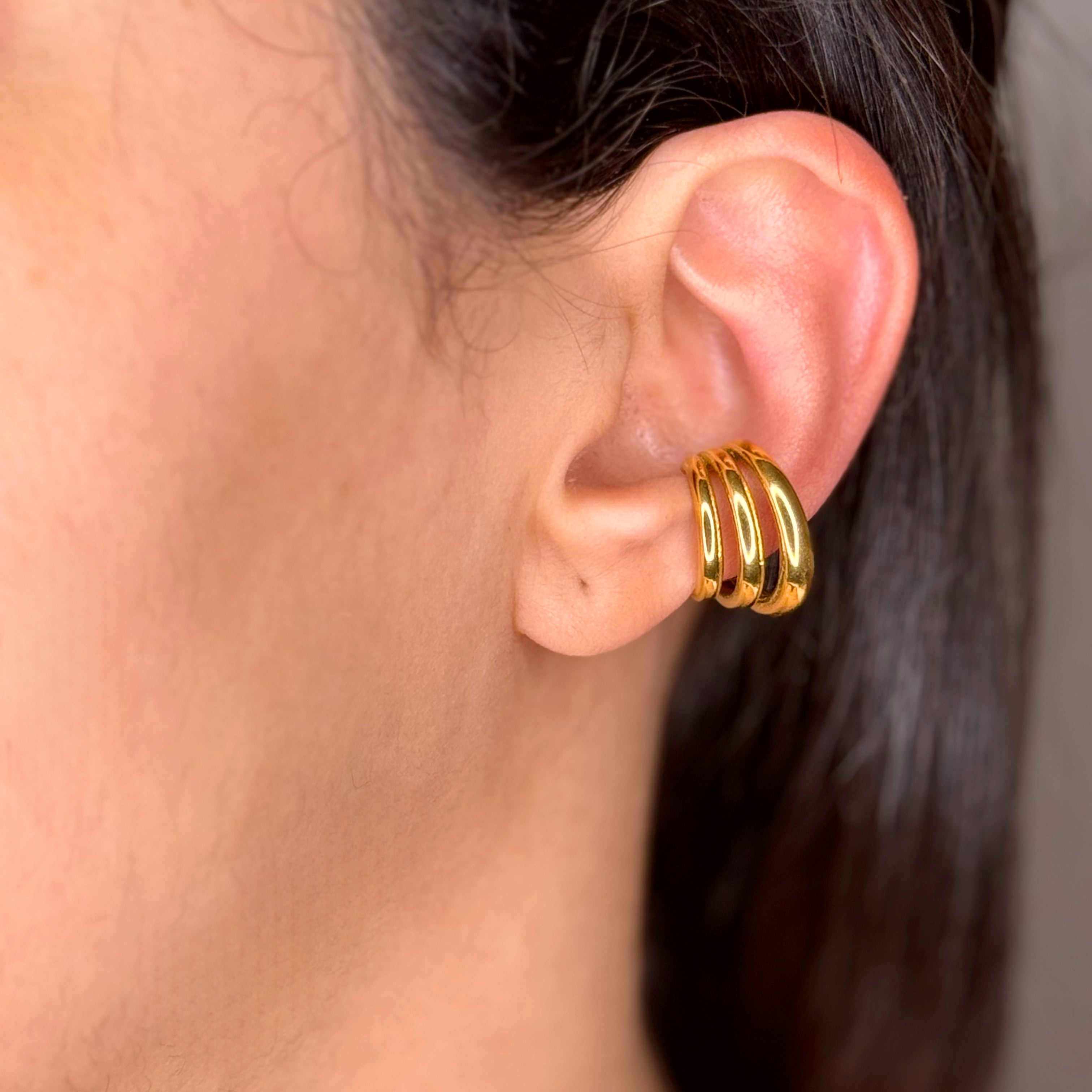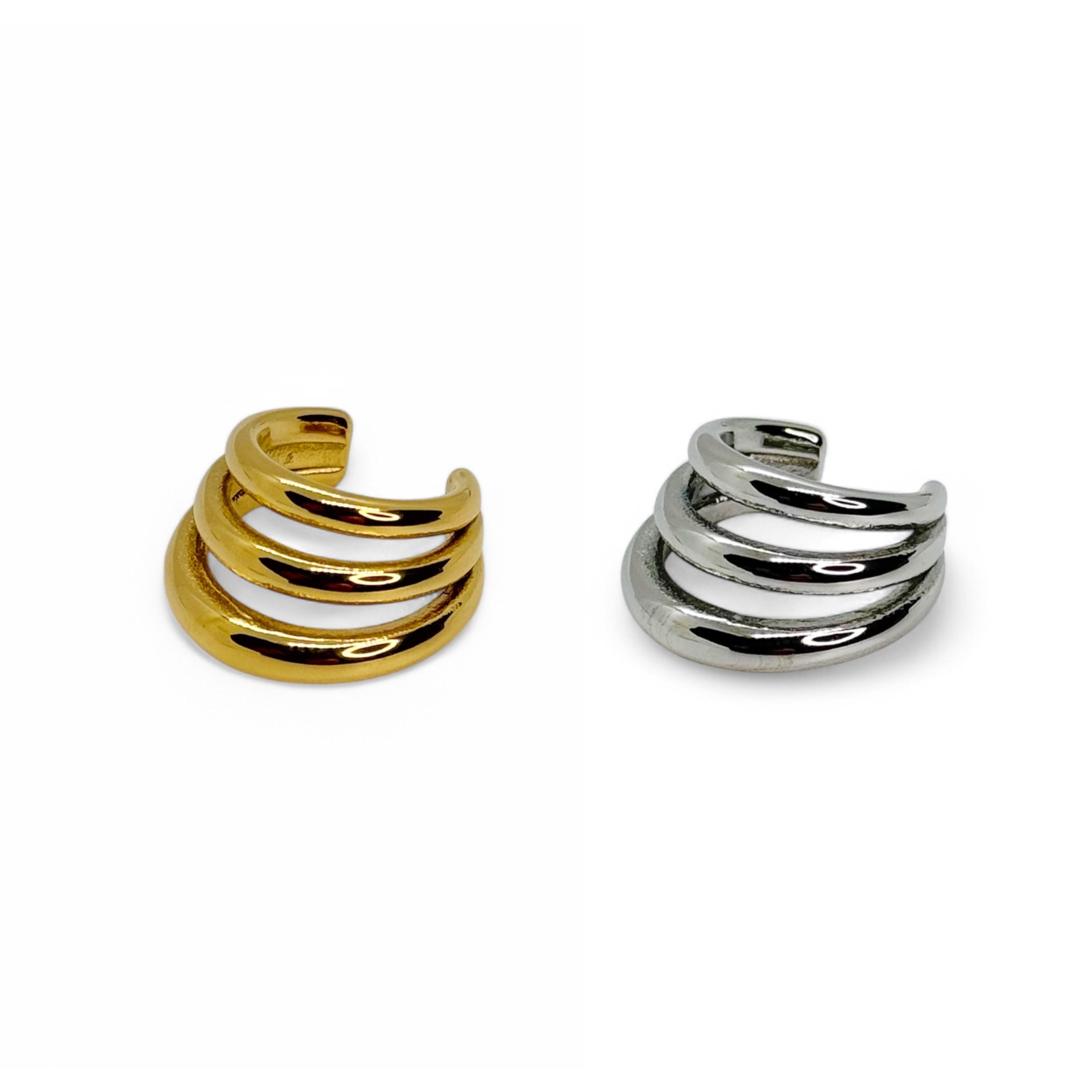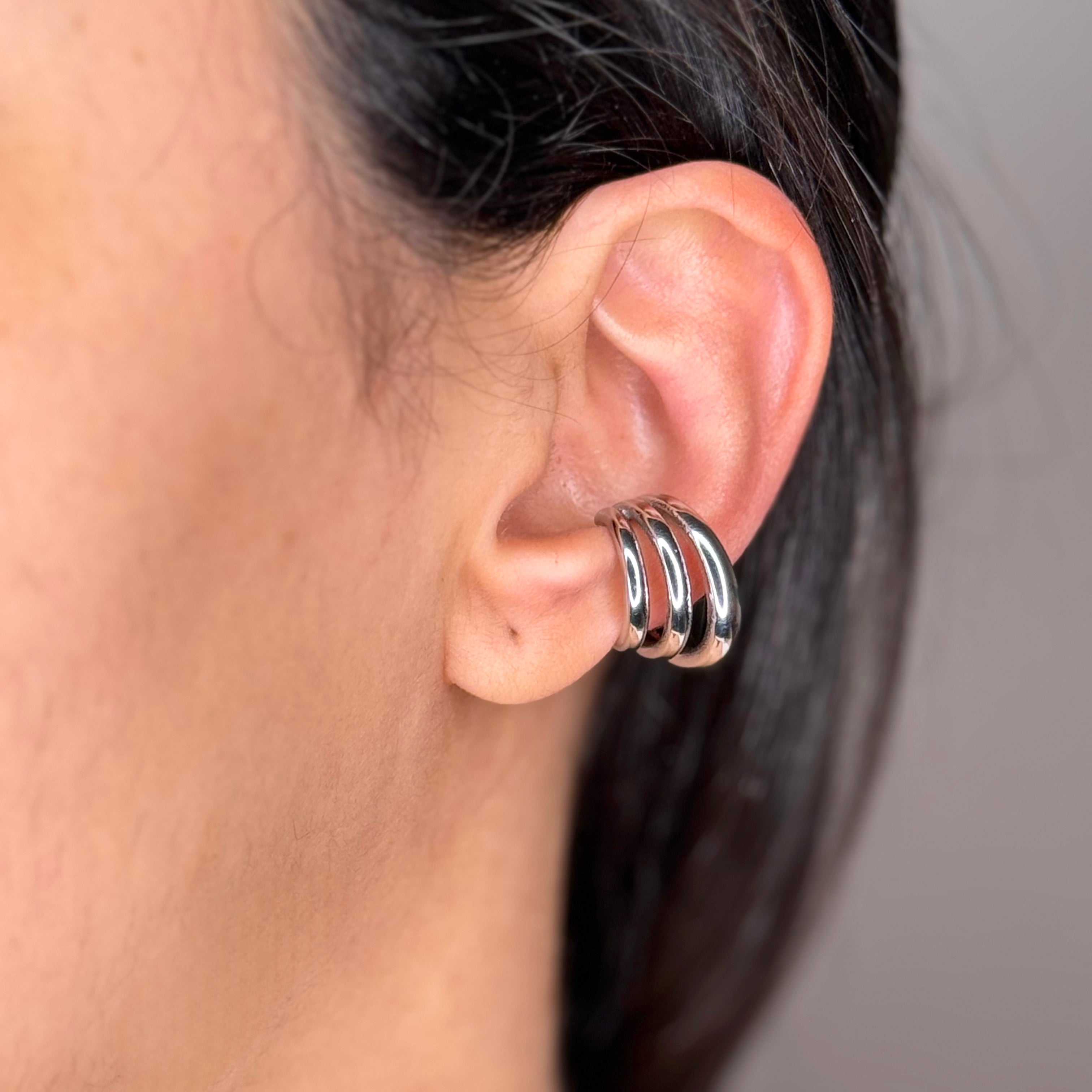 Ear Cuff Elisa è un orecchino dal design essenziale, caratterizzato da tre linee circolari di diametro decrescente che si uniscono all'estremità.