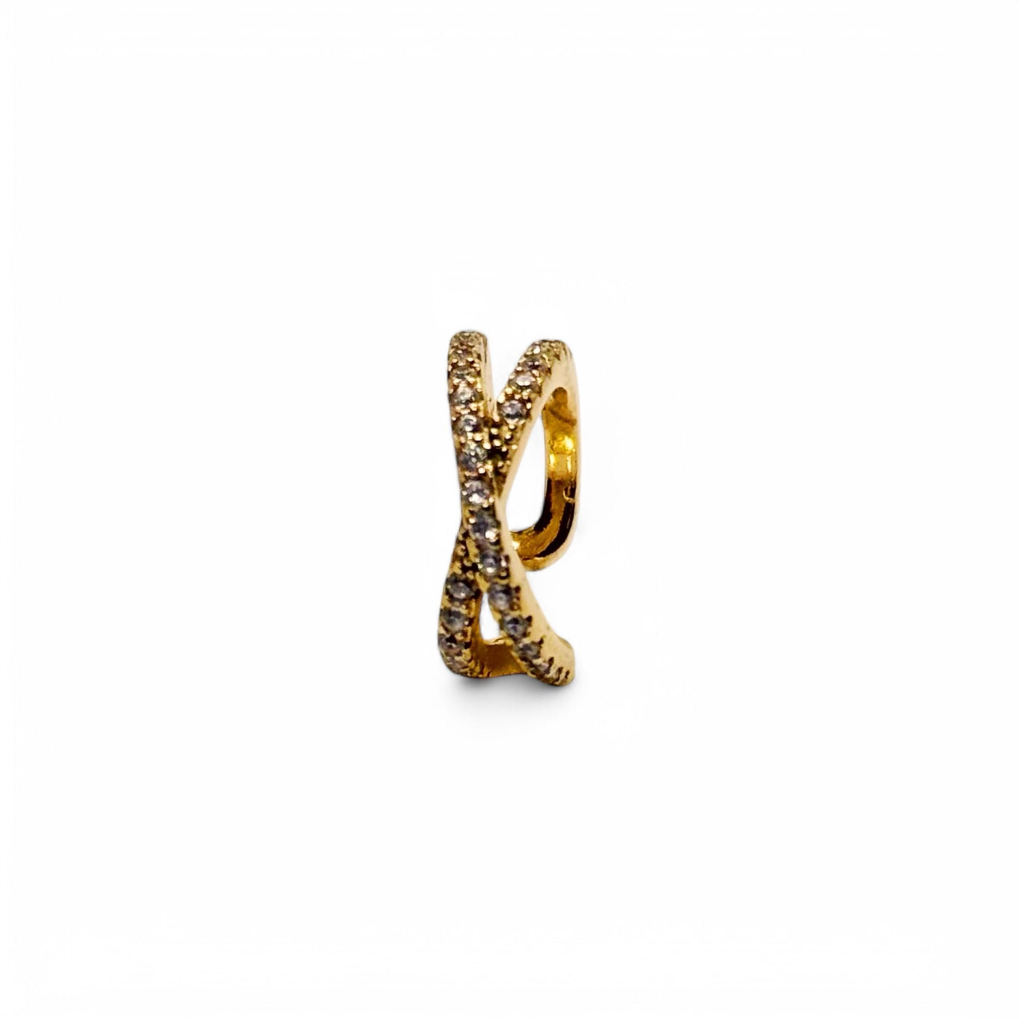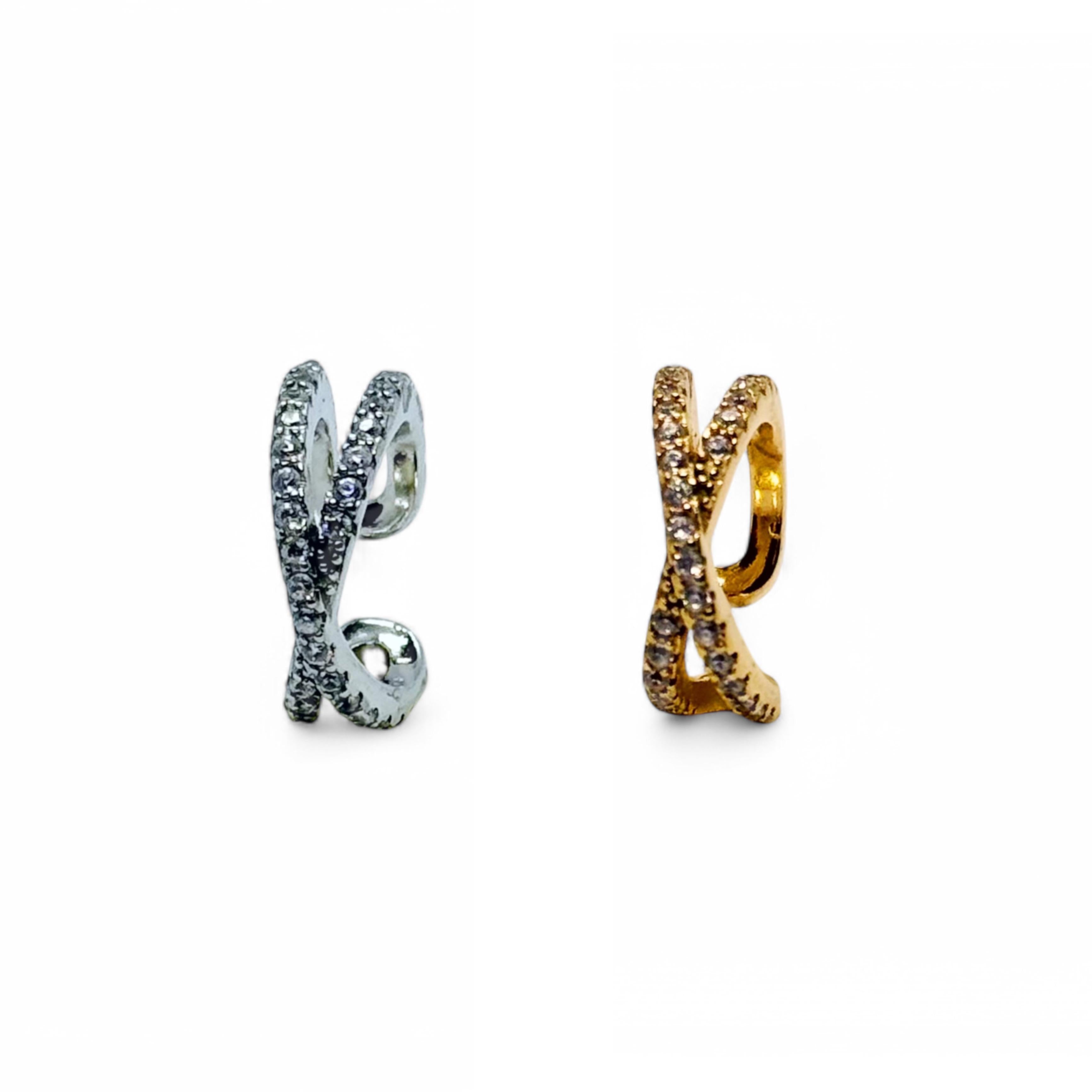 Ear Cuff Infinity si distingue per la sua struttura aperta a doppio anello intrecciato, impreziosita da due file di luminosi zirconi.