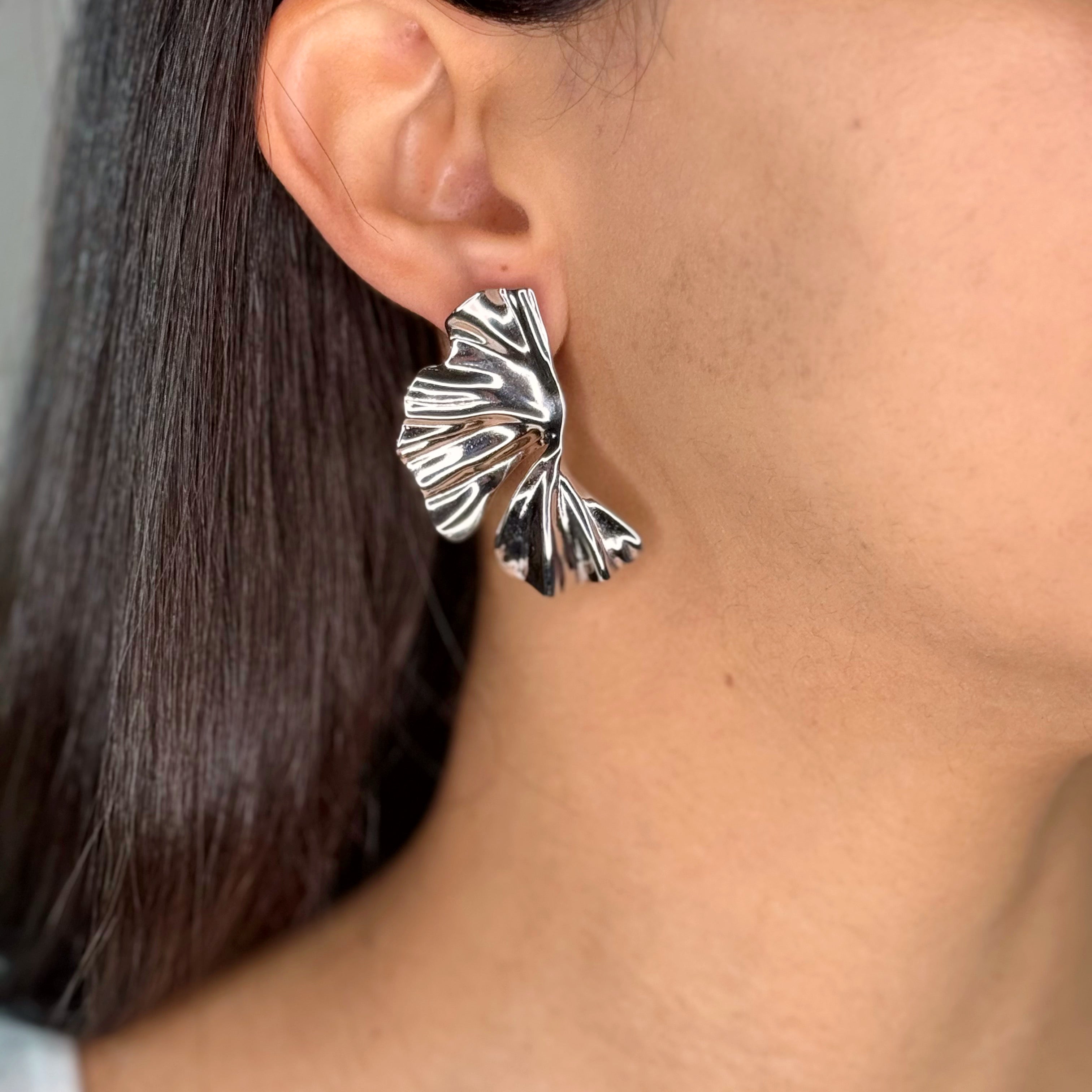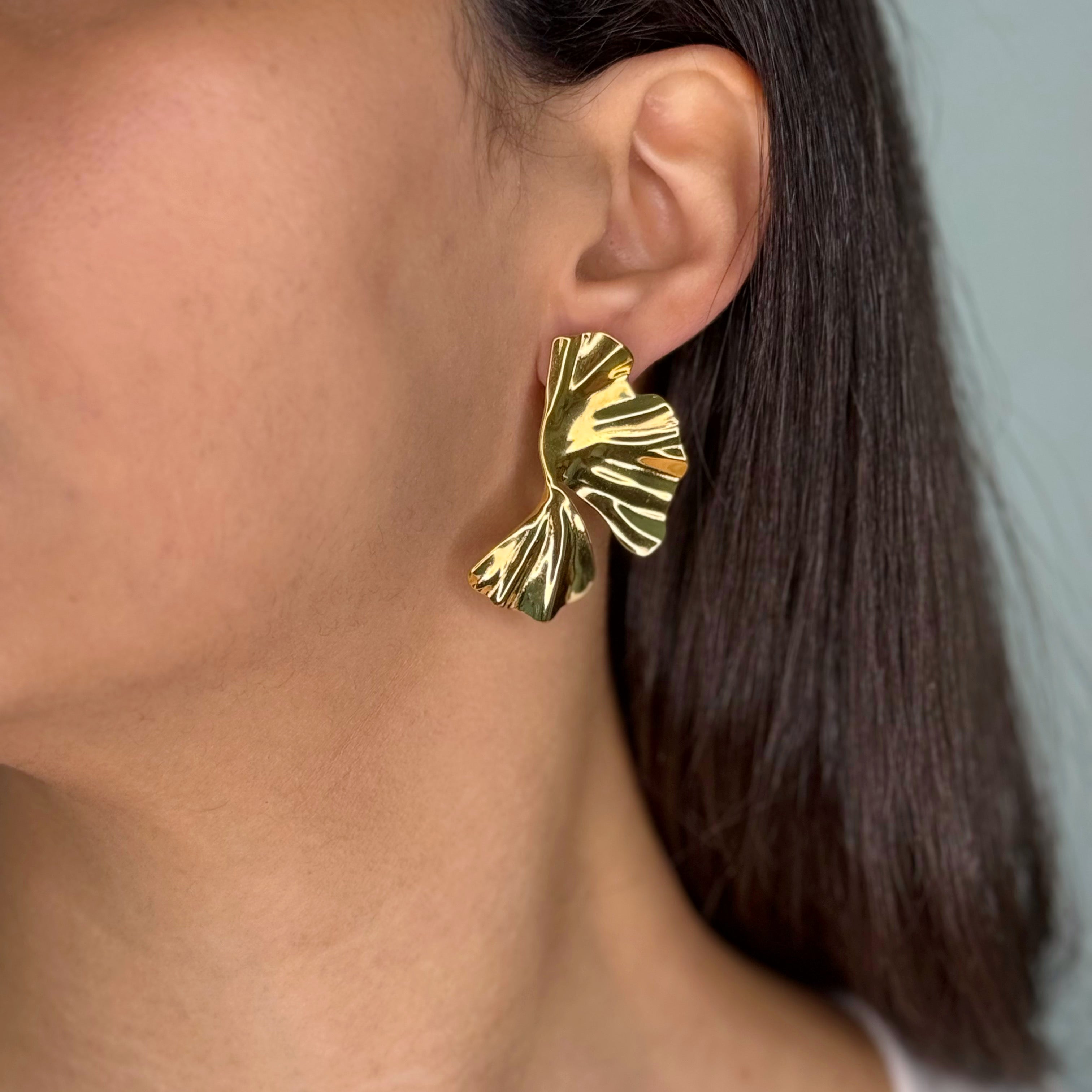 Gli Orecchini Kify sono modellati in una forma che richiama le foglie aperte e presentano una superficie texturizzata che riflette la luce, rendendo ogni movimento dell’orecchino un gioco di luminosità.