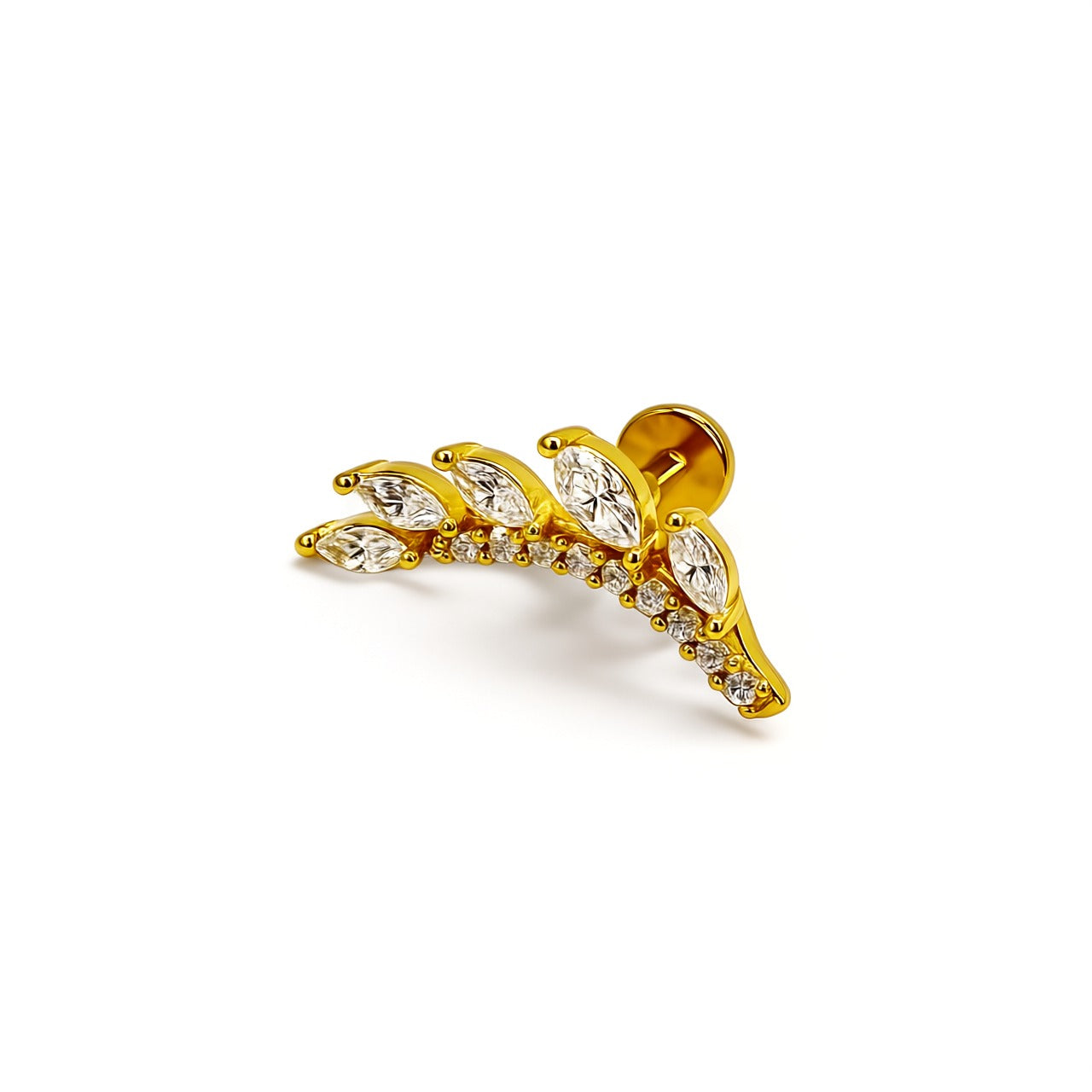 Il Pierce Aurora è un orecchino piercing composto da cinque zirconi ovali disposti a semicerchio sopra una fila di micro-zirconi.