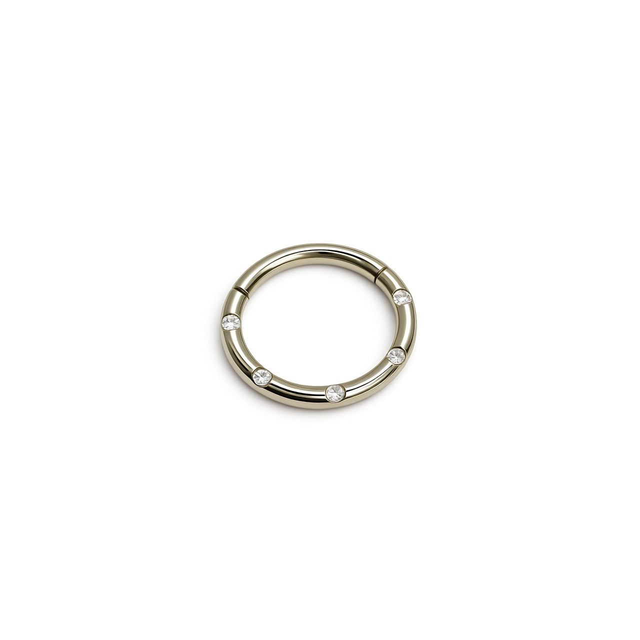Il Pierce Circle è un orecchino dal design minimalista e sofisticato, che gioca con l'eleganza della semplicità. Caratterizzato da un classico cerchio sottile, questo orecchino è impreziosito da cinque piccoli zirconi incastonati lungo il suo contorno.