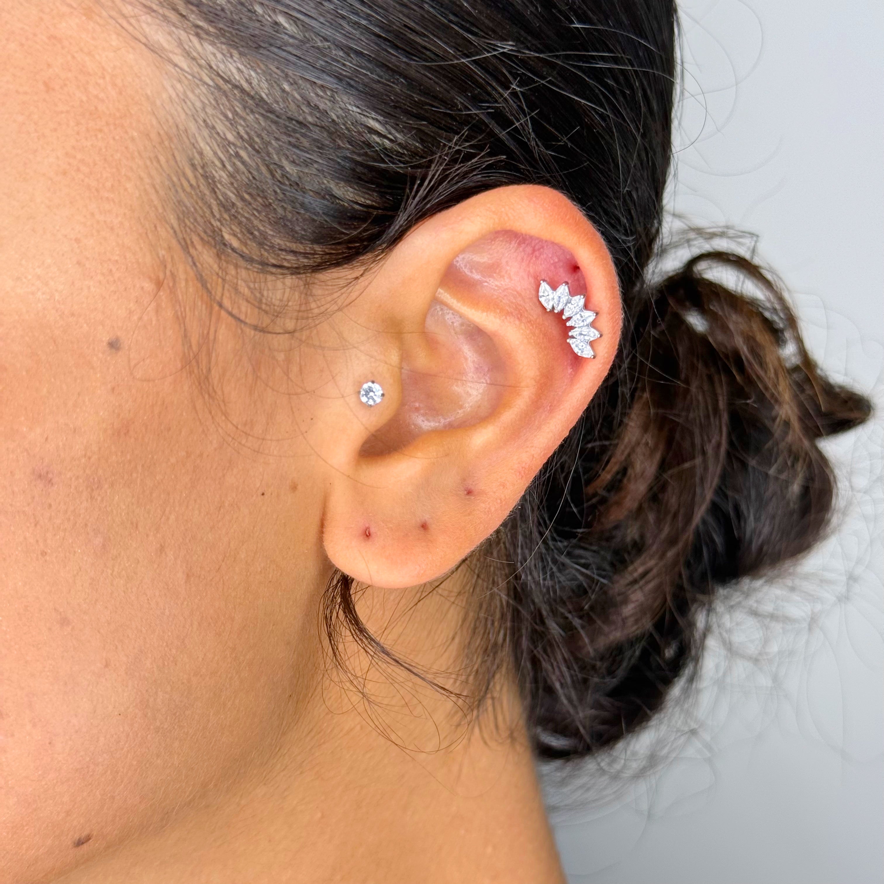 Il Pierce Corona è un raffinato piercing dal design che richiama una corona. Decorato con sei zirconi a forma di rombo, questo accessorio è perfetto per dare un tocco di lusso al look quotidiano. Gli orecchini piercing sono ideali per varie posizioni dell' orecchio, permettendo di creare look unici, indossandoli da soli o abbinandoli ad altri gioielli. La chiusura a vite filettata piatta offre il massimo comfort, rendendoli ideali da indossare sia di giorno che per dormire.