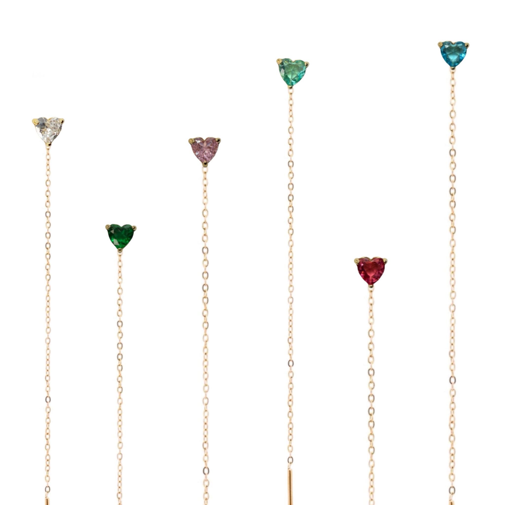 Saliscendi Little Heart sono impreziositi da zirconi a forma di cuore nei colori verde, rosso, verde acqua, azzurro, rosa e bianco. Un tocco di delicatezza per ogni occasione.