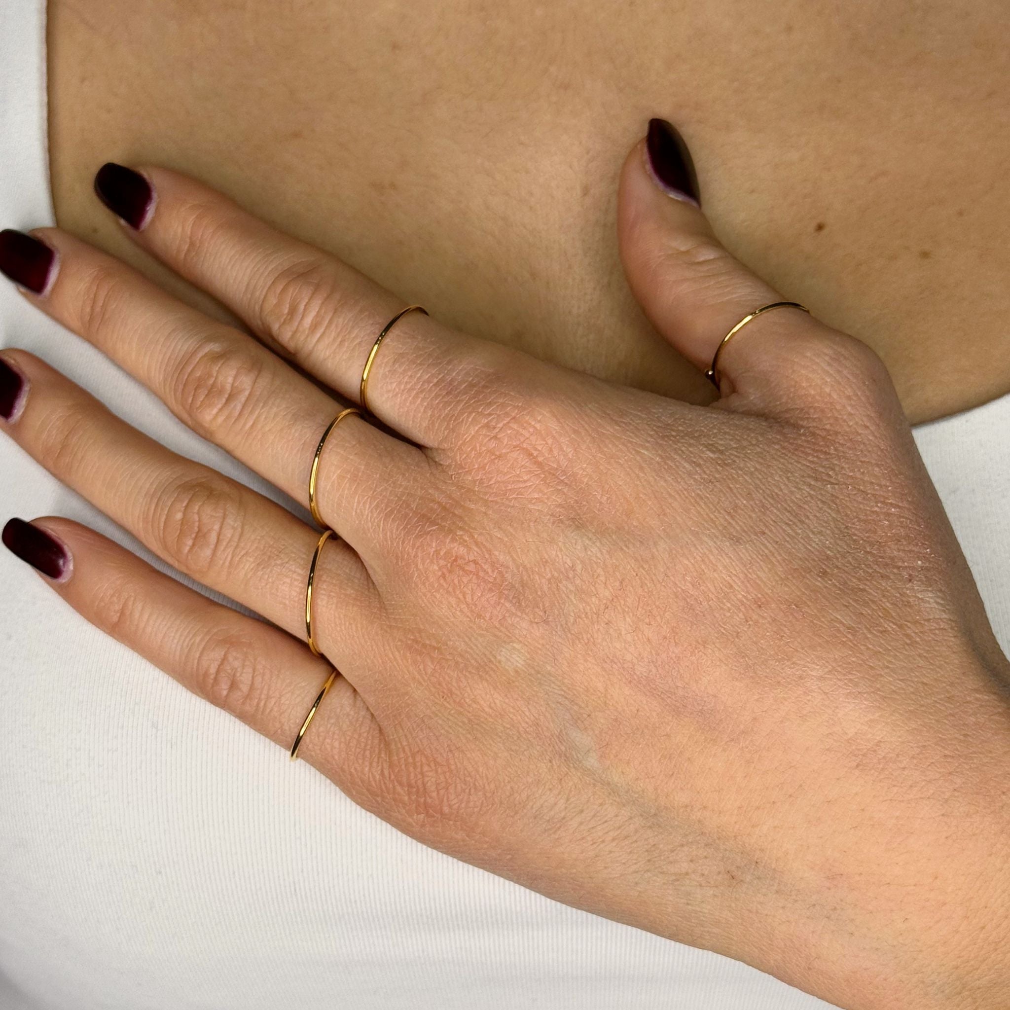 Il Set da 5 Fedine sottili e dal design semplice e delicato è una scelta versatile e alla moda per ogni collezione di gioielli.