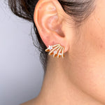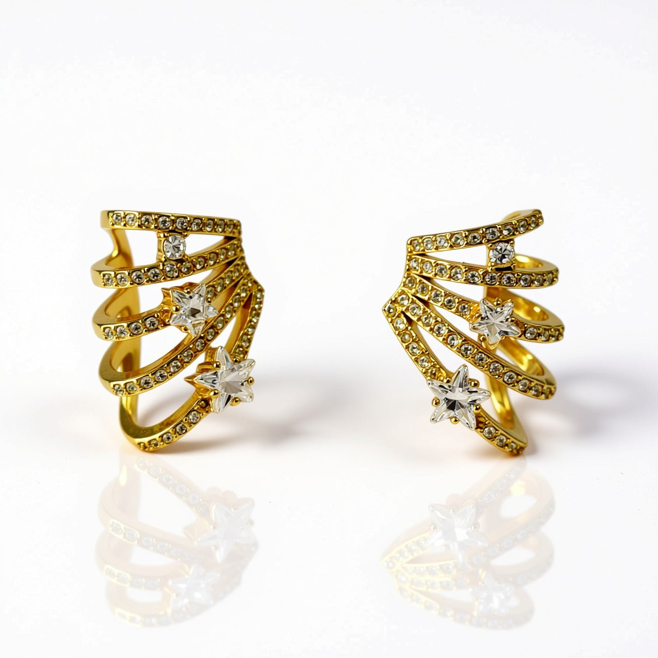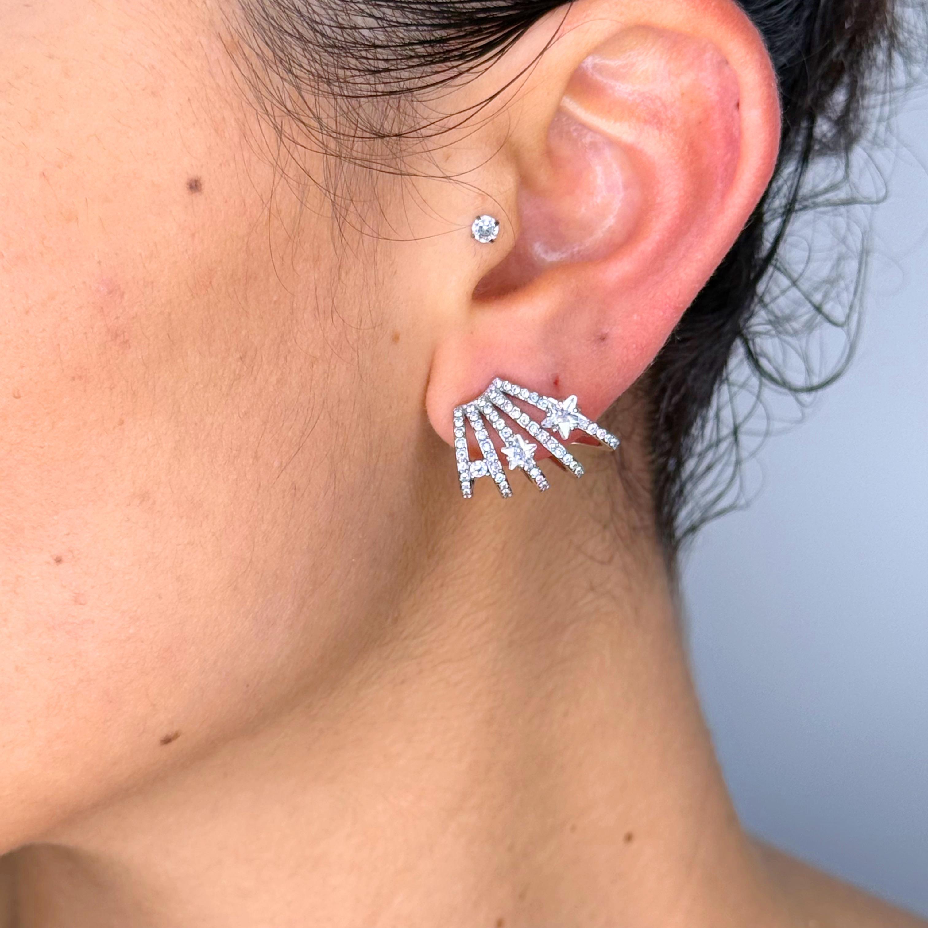 Gli Orecchini Nyra presentano linee fluide e luminose tra le quali tre stelle incastonate si intrecciano dando vita a una composizione armoniosa. Nyra è un dettaglio discreto ma ricco di carattere.