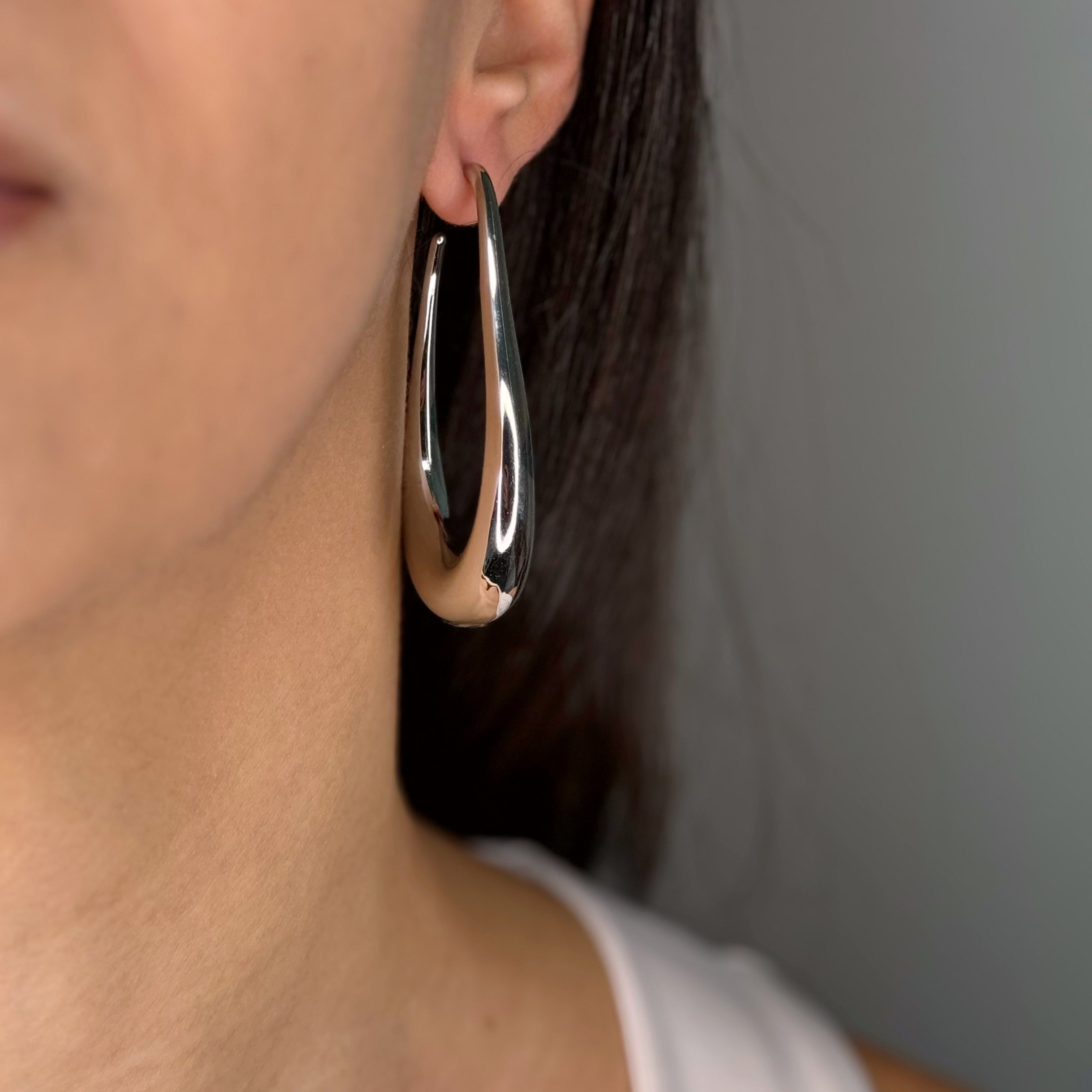 Gli Orecchini Longue Big uniscono eleganza e modernità con il loro design audace e sofisticato. Disponibili in finitura oro e argento, presentano una silhouette affusolata che richiama una forma a goccia.