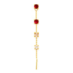 Pendente Passion è caratterizzato da una cascata di zirconi di colore rosso di tonalità decrescente dal lobo, accompagnati da uno zircone bianco alla base dell'orecchino e poggiati su una catenina sottile e fluida.